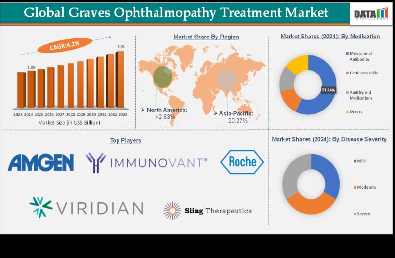 The Global Graves Ophthalmopathy Treatment Market size reached US$ 2.09 Billion in 2024 and is expected to reach US$ 3.01 Billion by 2033, growing at a CAGR of 4.2% during the forecast period 2025-2033.