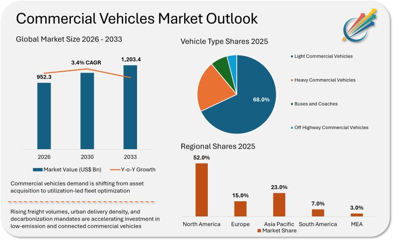 Commercial Vehicles Market Heads Toward USD 1.2 Trillion by 2033 as Electrificat …
