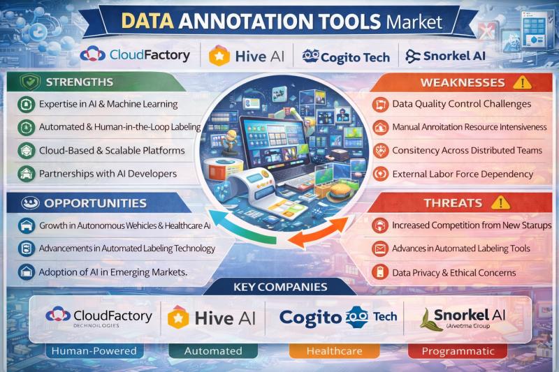 The data annotation tools market has emerged as a critical component of the artificial intelligence (AI) and machine learning (ML) ecosystem. Data annotation tools enable organizations to label and structure large datasets so that machine learning algorithms can learn from them effectively. These tools are widely used in computer vision, natural language processing, speech recognition, and autonomous systems.As AI adoption accelerates across industries such as healthcare, automotive, retail, and finance, the demand for accurate and scalable data labeling solutions continues to grow. Companies operating in the Data Annotation Tools Market are focusing on developing advanced platforms that combine automation, human-in-the-loop workflows, and quality control mechanisms. Strategic partnerships with AI developers, cloud providers, and technology companies are also shaping the competitive landscape.