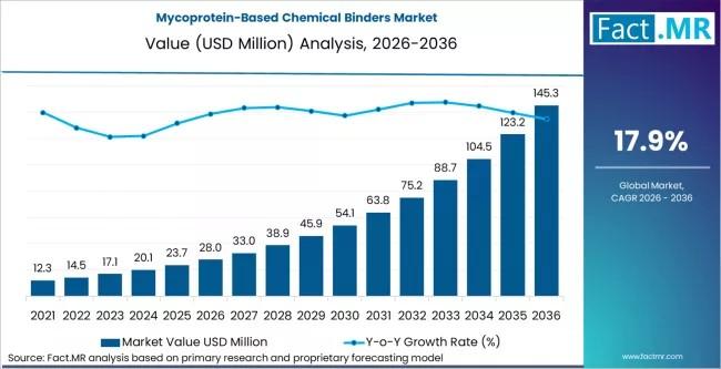 As global industries face intensifying pressure to transition toward bio-based circular economies, the intersection of fungal biotechnology and material science is creating a new frontier: mycoprotein-based chemical binders. A strategic analysis of this emerging sector reveals a market entering a high-impact growth phase, with global valuation projected to climb from US$ 28 million in 2026 to over US$ 145 million by the end of 2036.