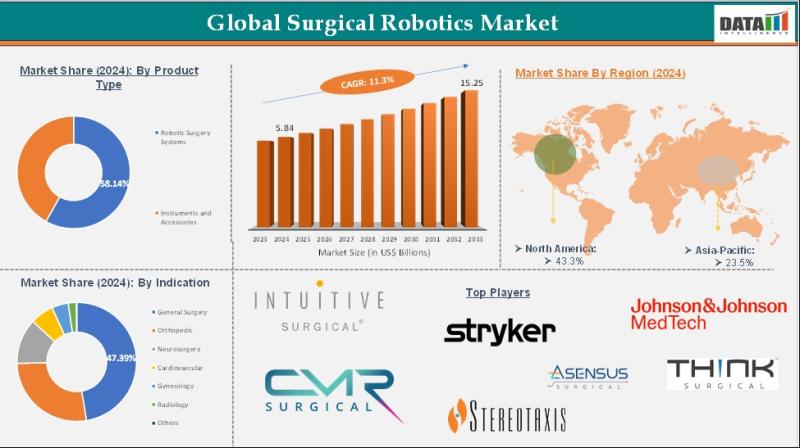 Surgical Robotics Market to Reach US$15.25 Billion by 2033 at 11.3% CAGR; North …