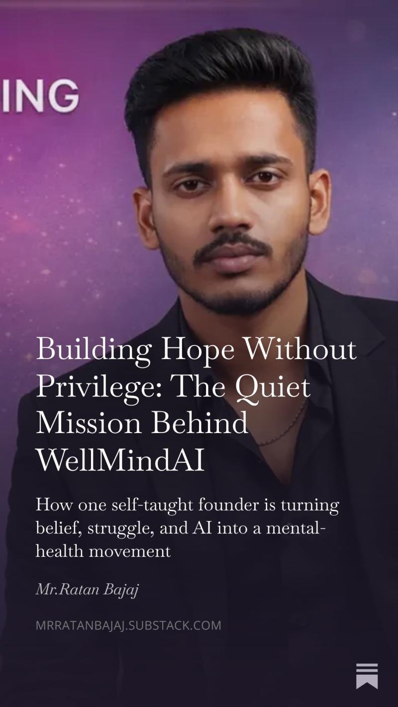 According to founder Ratan Bajaj, the vision behind WellMindAI is to build technology that supports human wellbeing in a compassionate and accessible way.