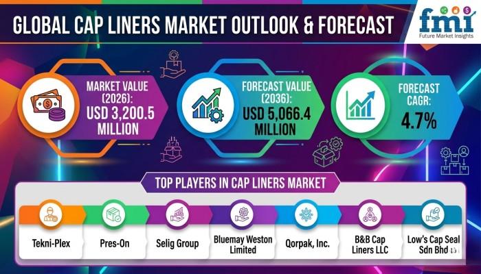 The global cap liners market is entering a new phase of transformation as packaging manufacturers and brand owners place greater emphasis on product integrity, regulatory compliance, and extended shelf life. According to the latest industry assessment by Future Market Insights, the market is valued at USD 3,200.5 million in 2026 and is projected to reach USD 5,066.4 million by 2036, expanding at a CAGR of 4.7% during the forecast period.
