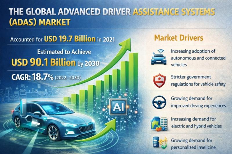 Advanced Driver Assistance Systems Market Size to Reach USD 90.1 Billion by 2030, Growing at 18.7% CAGR