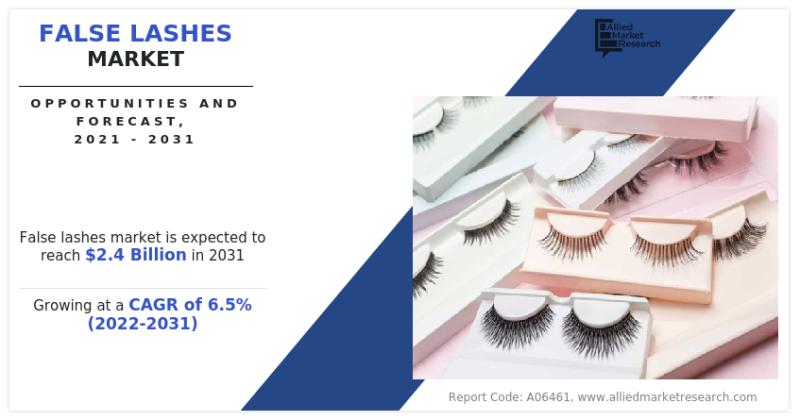 According to a new report published by Allied Market Research, titled, "False Lashes Market," The false lashes market size was valued at $1.3 billion in 2021, and is estimated to reach $2.4 billion by 2031, growing at a CAGR of 6.5% from 2022 to 2031.
