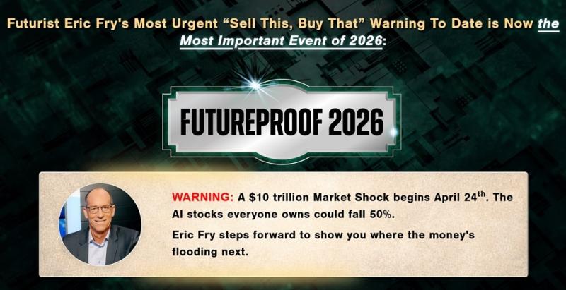 Eric Fry warns the AI boom may end April 24 with a $10T market shock. Join his FREE FutureProof 2026 event March 18 and get 15 under-the-radar stocks.FutureProof 2026 [https://steadyincomeinvestments.com/EricFryFutureProof] is a free, one-time online event scheduled for Wednesday, March 18, at 1 p.m. ET, hosted by stock analyst and futurist Eric Fry. The presentation focuses on what Fry describes as an impending regime change in the stock market, driven by developments in the AI sector that he expects to become visible starting April 24.