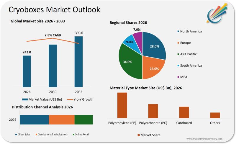 The cryoboxes market is currently positioned as a critical component within the life sciences and healthcare storage ecosystem, supporting the safe and organized preservation of biological samples at ultra-low temperatures. As of 2026, the market is valued at USD 242 million, reflecting robust demand from biobanks, research laboratories, and clinical diagnostics. The sector is characterized by increasing adoption of advanced cryogenic storage solutions, with polypropylene and polycarbonate materials…