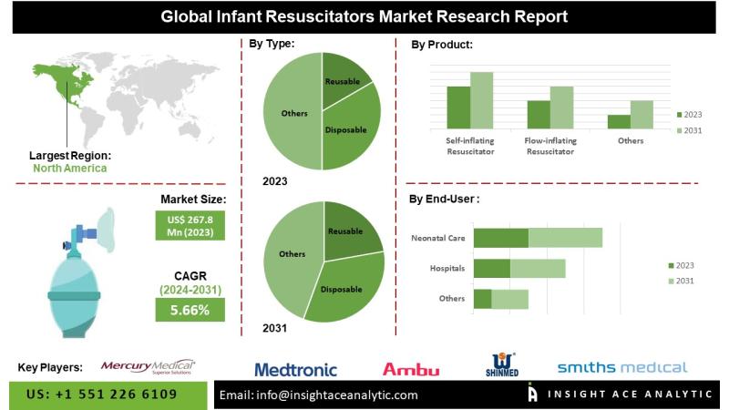 InsightAce Analytic Pvt. Ltd. announces the release of a market assessment report on the "Global Infant Resuscitators Market - (By Product (Self-inflating Resuscitator, Flow-inflating Resuscitator, T-piece Resuscitator), By Type (Reusable, Disposable), By End-user (Hospitals, Neonatal Care, Others)), Trends, Industry Competition Analysis, Revenue and Forecast To 2031."