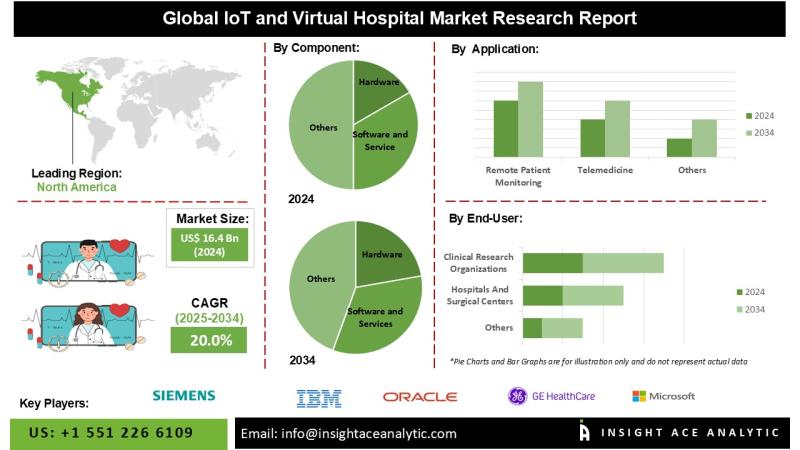 InsightAce Analytic Pvt. Ltd. announces the release of a market assessment report on the "Global IoT and Virtual Hospital Market - (By Component (Hardware, Software and Services, Connectivity Devices), By Application (Remote Patient Monitoring, Telemedicine, Store and Forward Telemedicine, Mhealth, Others), By End User (Hospitals and Surgical Centers, Clinical Research Organizations, Government and Defense Organizations, Research and Diagnostics Laboratories)), Trends, Industry Competition Analysis, Revenue and Forecast To 2034."