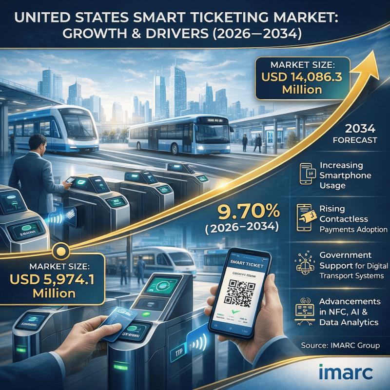 United States Smart Ticketing Market size set to climb from USD 5,974.1 Million in 2025 to USD 14,086.3 Million by 2034 at a 9.70% CAGR, as mobile ticketing, NFC integration, and cloud-based fare systems reshape the transportation and event access landscape.