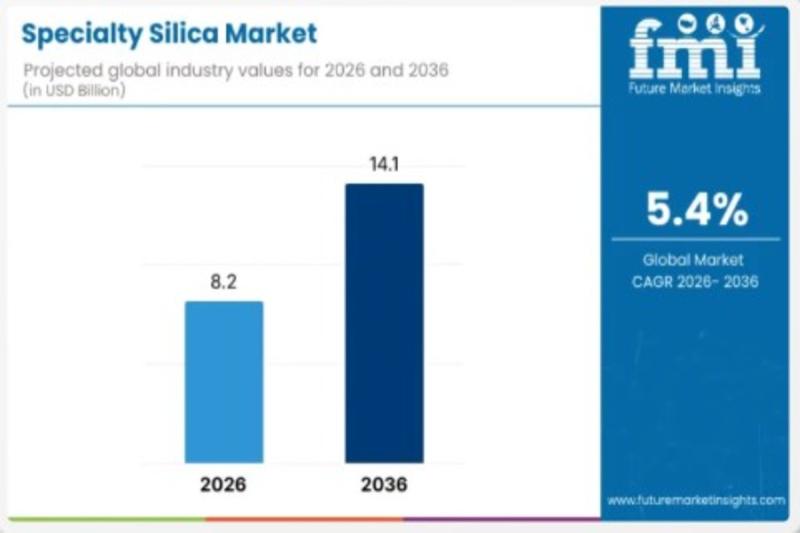 The global specialty silica market is entering a new phase of value-driven expansion, projected to grow from USD 8.2 billion in 2026 to USD 14.1 billion by 2036, at a steady CAGR of 5.6%. As industries shift toward high-performance materials with precise functional properties, specialty silica is emerging as a cornerstone input across mobility, healthcare, electronics, and consumer goods manufacturing.