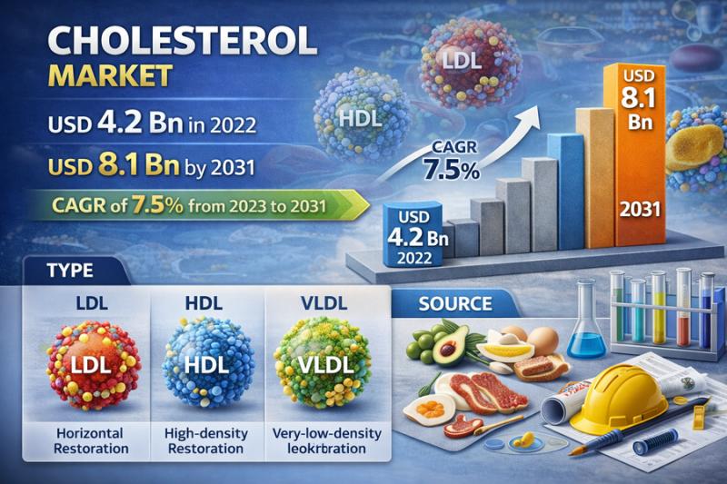 Cholesterol Market Valuation Projected to Reach USD 8.1 billion by 2031, Driven …