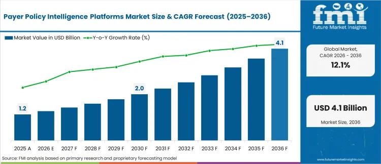 NEWARK, DE | The Payer Policy Intelligence Platforms Market, valued at USD 1.2 billion in 2025, is projected to reach USD 4.1 billion by 2036, expanding at a CAGR of 12.06%. With the market estimated at USD 1.3 billion in 2026, growth is being driven by the rapid adoption of NLP-enabled systems that streamline interpretation of complex reimbursement policies and eliminate delays in market access workflows.