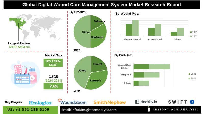 InsightAce Analytic Pvt. Ltd. announces the release of a market assessment report on the "Global Digital Wound Care Management System Market Size, Share & Trends Analysis Report By Product (Software, Hardware), Wound Type (Chronic Wound (Diabetic Foot Ulcers, Pressure Ulcer (PU), Venous Leg Ulcers), Acute Wound), End Use (Hospitals, Wound Care Clinics, Others)- Market Outlook And Industry Analysis 2031"