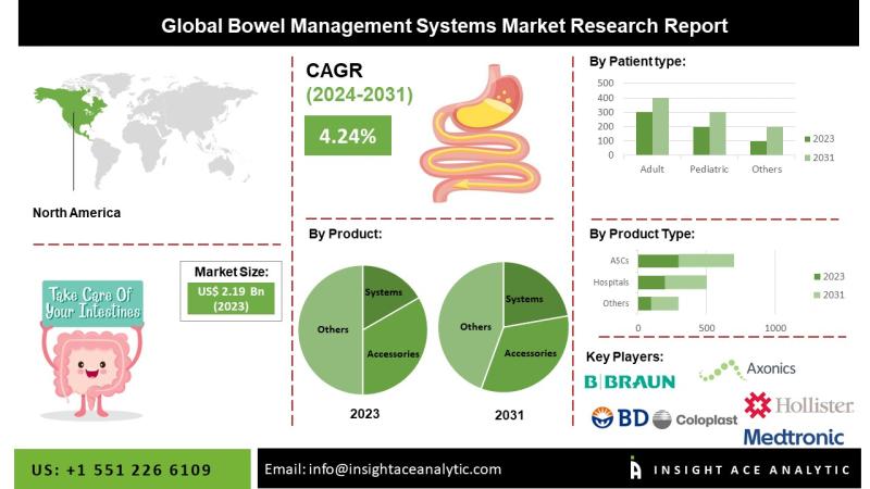 "Bowel Management Systems Market" in terms of revenue was estimated to be worth $2.19 billion in 2023 and is poised to reach $3.02 billion by 2031, growing at a CAGR of 4.24% from 2024 to 2031 according to a new report by InsightAce Analytic.