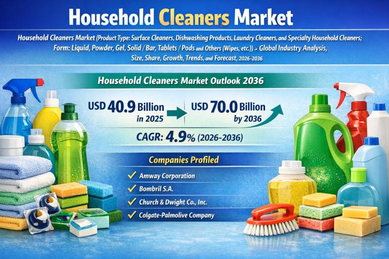 The global household cleaners market is experiencing steady and sustained growth, driven by rising hygiene awareness, evolving consumer lifestyles, and increasing demand for effective cleaning solutions. The market was valued at USD 40.9 Billion in 2025 and is projected to reach USD 70.0 Billion by 2036, expanding at a CAGR of 4.9% from 2026 to 2036.