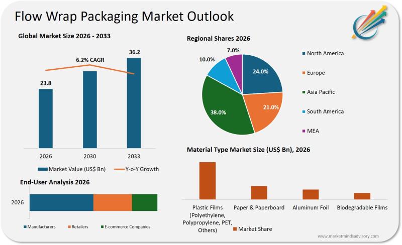 Flow Wrap Packaging Market to Reach USD 36.2 Billion by 2033, Exhibiting 6.2% CA …