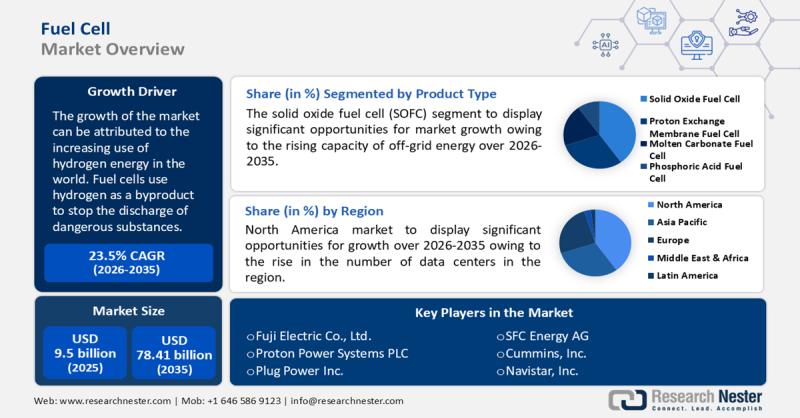 The fuel cell market is witnessing substantial expansion as industries shift toward cleaner energy solutions. In 2025, the market is valued at USD 9.5 billion, and it is projected to reach USD 78.41 billion by 2035, growing at a compound annual growth rate (CAGR) of 23.5% between 2026 and 2035. This rapid growth reflects increasing adoption across transportation, stationary power generation, and portable energy applications.