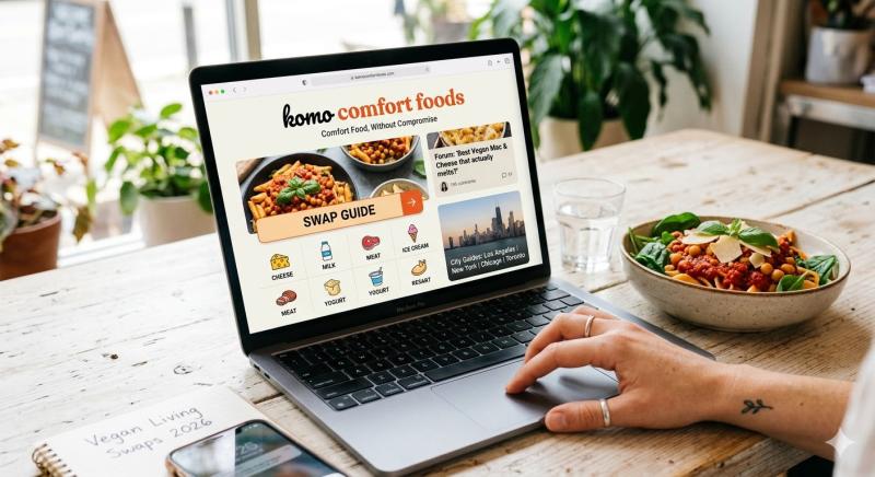 Discover Komo Comfort Foods: Your ultimate vegan directory for easy swaps, city restaurant guides, and a vibrant community forum.
