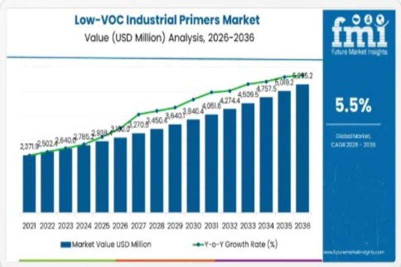 The global low-VOC industrial primers market is entering a transformative growth phase, driven by tightening environmental regulations and rapid advancements in coating technologies. Valued at USD 3,100.0 million in 2026, the market is projected to reach USD 5,295.0 million by 2036, expanding at a steady CAGR of 5.5% over the forecast period.