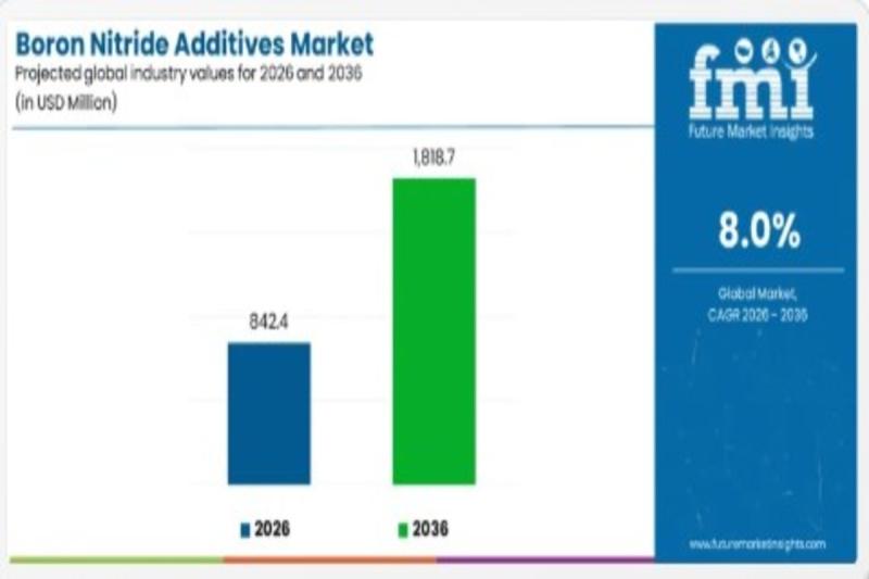 The global boron nitride additives market is poised for significant expansion, projected to grow from USD 842.4 million in 2026 to USD 1,818.7 million by 2036, registering a steady CAGR of 8.00% over the forecast period. The market's trajectory reflects increasing reliance on high-performance materials that enable efficient thermal management, electrical insulation, and enhanced durability across advanced industrial applications.