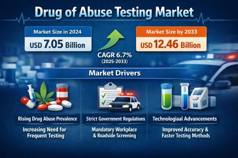Drug of Abuse Testing Market to Reach USD 12.46 Billion by 2033: Growth, Trends, …
