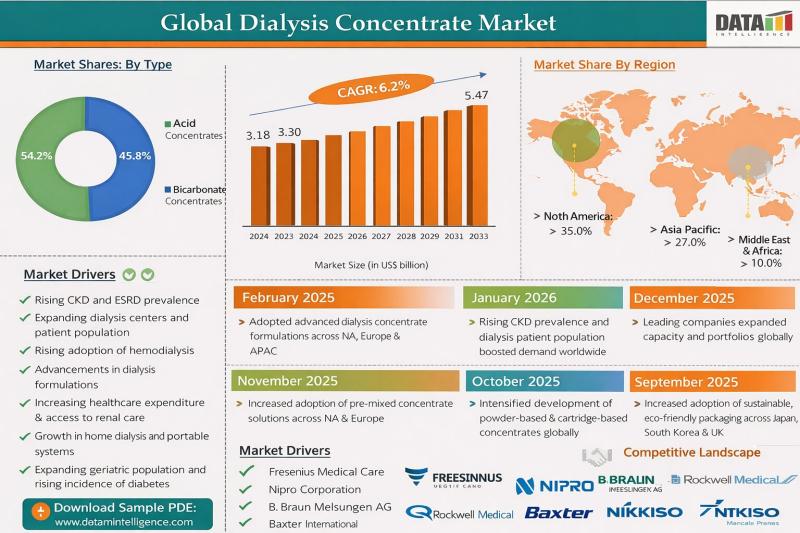 Dialysis Concentrate Market to Reach US$5.47 Billion by 2033 at 6.2% CAGR; North …