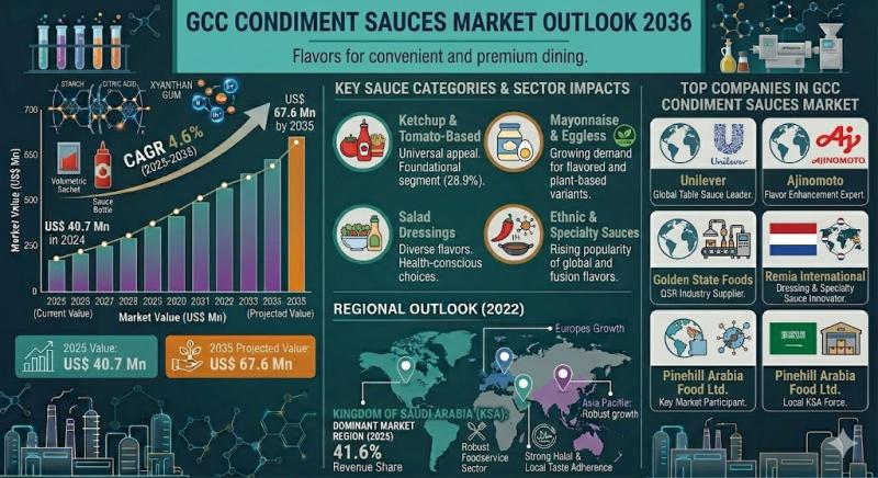 GCC Condiment Sauces Market to Reach USD 67.6 Million by 2036 Driven by Rising D …