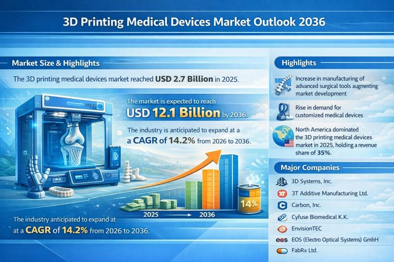 3D Printing Medical Devices Market to Reach USD 12.1 Billion by 2036, Driven by 14.2% CAGR and Rising Demand for Personalized Healthcare Solutions