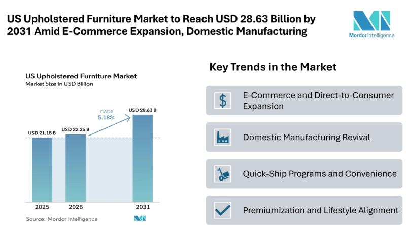 According to recent industry analysis, the United States upholstered furniture market size [https://www.mordorintelligence.com/industry-reports/unitedstates-upholstered-furniture-market?utm_source=abnewswire] in 2026 is estimated at USD 22.25 billion, rising from USD 21.15 billion in 2025, with projections indicating the market will reach USD 28.63 billion by 2031, registering…