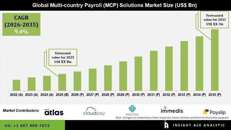 InsightAce Analytic Pvt. Ltd. announces the release of a market assessment report on the "Global Multi-country Payroll (MCP) Solutions Market- (By Deployment Type (On-premise and Cloud-based), By End-use Industry (IT & Telecom, Financial Services, Retail & E-commerce, Healthcare, Manufacturing, and Others)) Trends, Industry Competition Analysis, Revenue and Forecast To 2035."