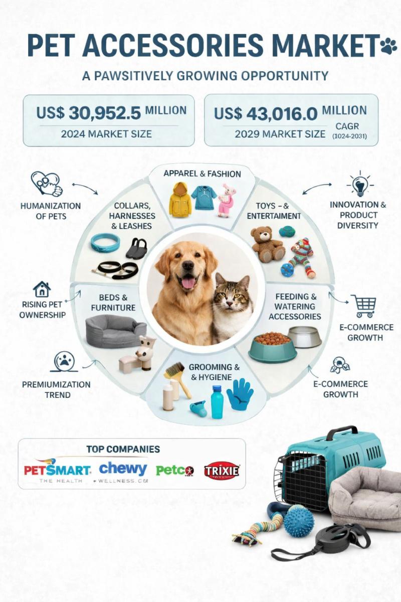 👉 Global Pet Accessories Market reached US$ 30,952.5 million in 2024 and is expected to reach US$ 43,016.0 million by 2029, growing with a CAGR of 5.60% during the forecast period 2024-2031.