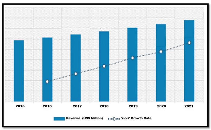 The intravenous iron and oral iron drug market in the US is expected to grow at a CAGR of 4.9% during the forecast period 2015−2021.