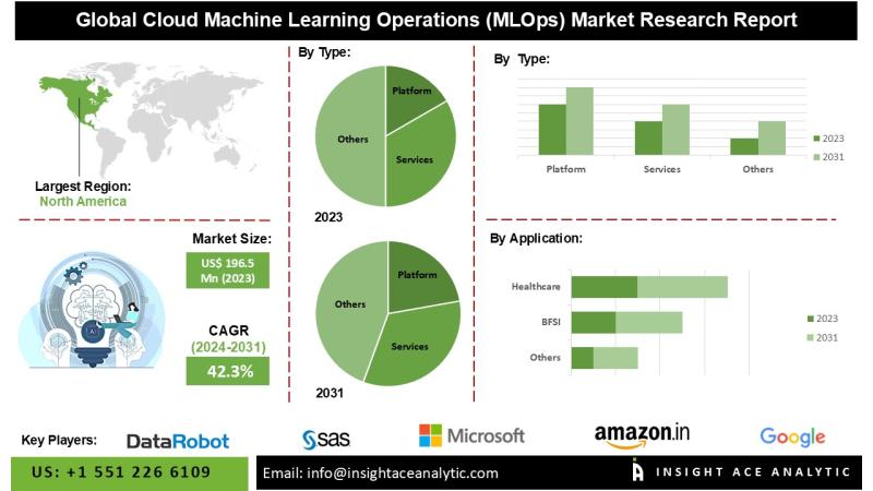 InsightAce Analytic Pvt. Ltd. announces the release of a market assessment report on the "Global Cloud Machine Learning Operations (MLOps) Market - (By Type (Platform, Services), By Application (BFSI, Healthcare, Retail, Manufacturing, Public Sector, Others)), Trends, Industry Competition Analysis, Revenue and Forecast To 2031."According to the latest research by InsightAce Analytic, the Global Cloud Machine Learning Operations (MLOps) Market is valued at US$ 196.5 Mn in 2023, and it is expected to reach US$ 3,156.0 Mn by 2031, with a CAGR of 42.3% during the forecast period of 2024-2031.