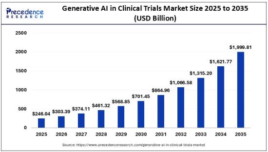 According to Precedence Research, the generative AI in clinical trials market size will grow from USD 246.04 billion in 2025 to nearly USD 1999.81 billion by 2035, expanding at a robust compound annual growth rate (CAGR) of 23.31%. Key drivers fueling this growth include the rising demand for accelerated drug development, cost-efficiency in clinical trials, and the increasing role of AI in optimizing trial processes. With applications ranging from patient…