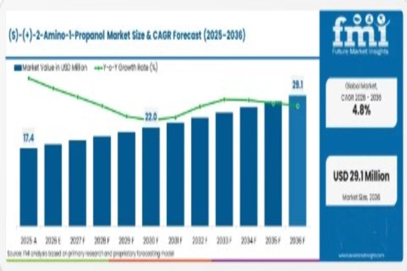 The global (S)-(+)-2-amino-1-propanol market is entering a phase of steady, specification-driven expansion, with market valuation projected to grow from USD 18.24 million in 2026 to USD 29.14 million by 2036, registering a CAGR of 4.80%. According to recent industry analysis, the market was valued at USD 17.40 million in 2025, reflecting a consistent upward trajectory fueled by pharmaceutical manufacturing demand and evolving regulatory standards.