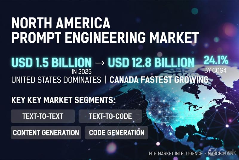 Pune, Maharashtra, India - March 31, 2026 - HTF Market Intelligence has released its latest comprehensive study on the North America Prompt Engineering Market. The report reveals that the market is projected to grow significantly from USD 1.5 billion in 2025 to USD 12.8 billion by 2034, expanding at a robust CAGR of 24.1% during the forecast period 2026-2034.