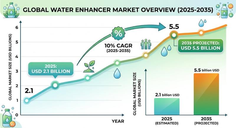 The global beverage landscape is undergoing a fundamental shift as consumers trade sugary sodas for high-performance, ""clean-label"" water enhancers. According to a comprehensive market analysis by Fact.MR, the global water enhancer industry is projected to skyrocket from USD 2.1 billion in 2025 to USD 5.5 billion by 2035, expanding at a robust CAGR of 10%.