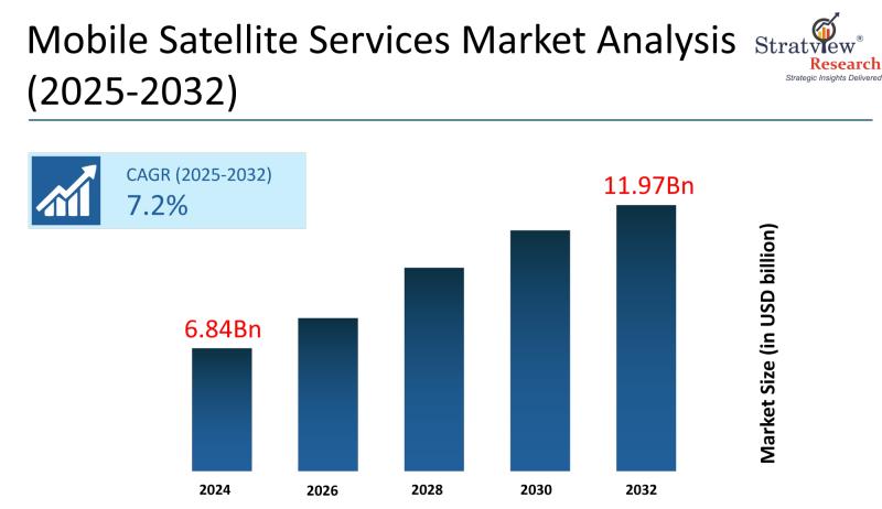 The mobile satellite services market refers to satellite-based communication systems that provide voice, data, and messaging connectivity to users in remote or mobile environments where terrestrial networks are limited or unavailable. According to Stratview Research, the market was valued at USD 6.84 billion in 2024 and is expected to reach USD 11.97 billion by 2032, growing at a CAGR of 7.2% during the forecast period of 2025-2032. The most significant growth driver is the increasing demand for reliable connectivity in remote locations, as industries such as defense, maritime, aviation, and energy require uninterrupted communication capabilities in areas lacking traditional infrastructure.Stratview Research, a global market research firm, has launched a report on the global market, which provides a comprehensive outlook of the global and regional industry forecast, current & emerging market trends, segment analysis, competitive landscape, & more.