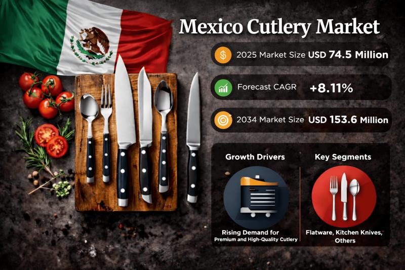 IMARC Group has recently released a new research study titled "Mexico Cutlery Market Size, Share, Trends and Forecast by Product Type (Plastic, Stainless Steel, Silver, Gold), Distribution Channel (Online, Offline), Application (Household, Public Consumption Restaurant, High-end Restaurant), and Region 2026-2034", which offers a detailed analysis of the market drivers, segmentation, growth opportunities, trends and competitive landscape to understand the current and future market scenarios.