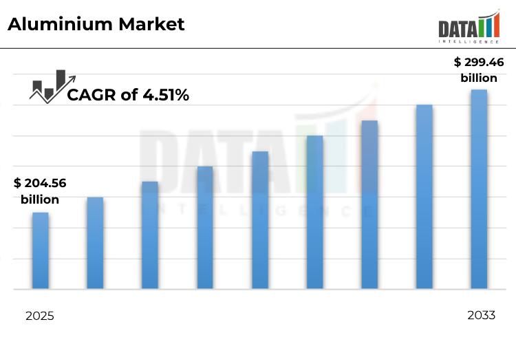 The global aluminum market size reached US$ 204.56 billion in 2025 and is expected to reach US$ 299.46 billion by 2033, growing with a CAGR of 4.51% during the forecast period 2026-2033.DataM Intelligence unveils exclusive insights into the Aluminium Market 2026, highlighting emerging trends, growth drivers, and key regional opportunities worldwide. The report helps solve critical business challenges by identifying high-growth segments and reducing investment risks through actionable forecasts. With in-depth competitive benchmarking, it enables smarter strategies and confident decision-making.