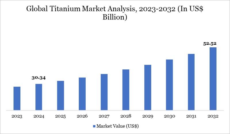 The Titanium Market size reached US$ 30.34 billion in 2024 and is expected to reach US$ 52.52 billion by 2032, growing with a CAGR of 7.10% during the forecast period 2026-2032.