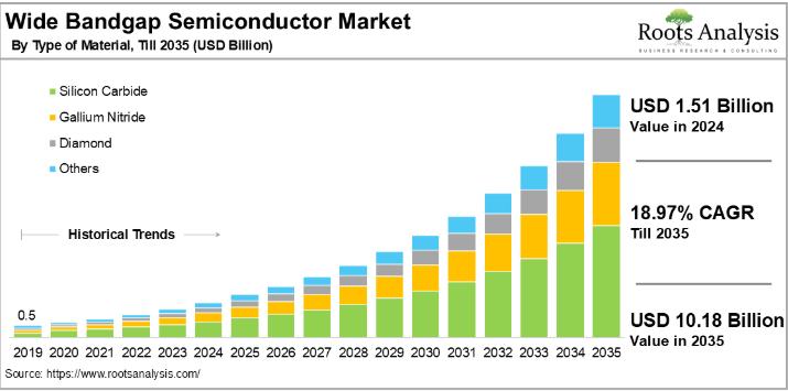 The global wide bandgap semiconductors market, valued at USD 1.51 billion in 2024, will reach USD 10.18 billion by 2035, advancing at a compound annual growth rate of 18.97% over the forecast period. This near-sevenfold expansion reflects accelerating demand from electric vehicle manufacturers, renewable energy developers, and 5G infrastructure builders who collectively need power electronics that silicon alone cannot deliver.To explore the complete findings, request a free sample of the report at https://www.rootsanalysis.com/wide-bandgap-semiconductors-market/request-sample