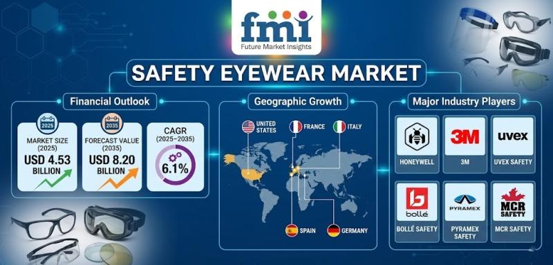 The global safety eyewear market is witnessing steady growth, projected to expand from USD 4.53 billion in 2025 to approximately USD 8.20 billion by 2035, registering a CAGR of 6.1%. This growth is driven by increasing industrialization, stringent workplace safety regulations, and rising awareness regarding eye protection across high-risk industries.