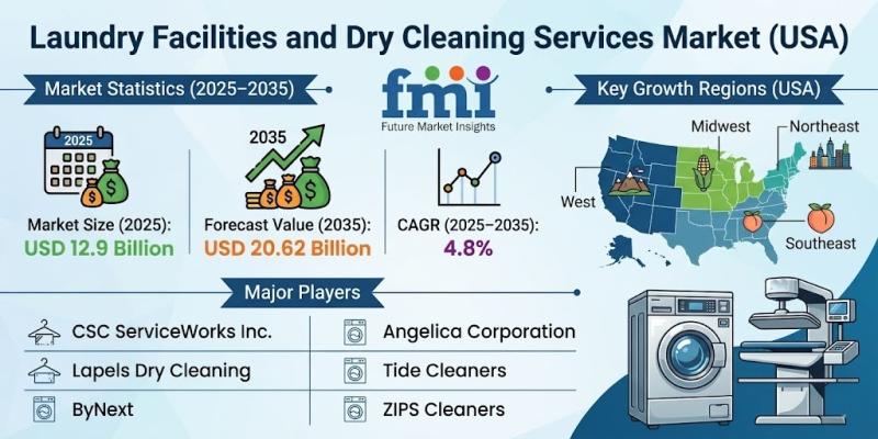 The United States laundry facilities and dry cleaning services market is witnessing steady growth, projected to expand from USD 12.9 billion in 2025 to approximately USD 20.62 billion by 2035, registering a CAGR of 4.8%. This growth is driven by increasing demand for convenient, high-quality laundry services across residential and commercial sectors, along with rising urbanization and evolving consumer lifestyles.