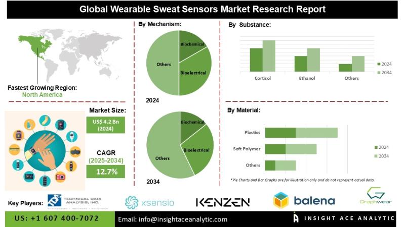 InsightAce Analytic Pvt. Ltd. announces the release of a market assessment report on the "Global Wearable Sweat Sensors Market Size, Share & Trends Analysis Report By Mechanism (Biochemical, and Bioelectrical), by Substance (Cortisol, Ethanol, and Others), By Material (Soft Polymer, Plastics, and Others)-Market Outlook And Industry Analysis 2034"