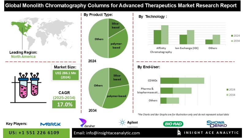 InsightAce Analytic Pvt. Ltd. announces the release of a market assessment report on the "Global Monolith Chromatography Columns for Advanced Therapeutics Market - (By Monolithic Columns (Silica-based, polymer-based, hybrid monolithic column), Technology (High-performance liquid chromatography (HPLC), Gas chromatography (GC), Liquid chromatography (LC), Capillary electrochromatography (CEC), Supercritical fluid chromatography), End-Users (Pharmaceutical Biotechnology Companies, Food & Beverage Manufacturers, Diagnostics)), By Region, Trends, Industry Competition Analysis, Revenue and Forecast To 2034."
