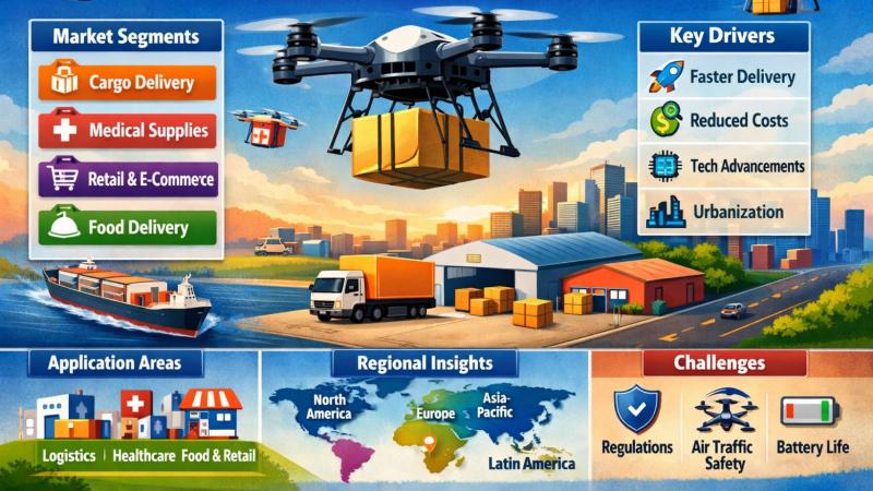 The latest study released on the Global Drone Logistics Market by HTF MI Research evaluates market size, trend, and forecast to 2033. The Drone Logistics study covers significant research data and proofs to be a handy resource document for managers, analysts, industry experts and other key people to have ready-to-access and self-analyzed study to help understand market trends, growth drivers, opportunities and upcoming challenges and about the competitors.