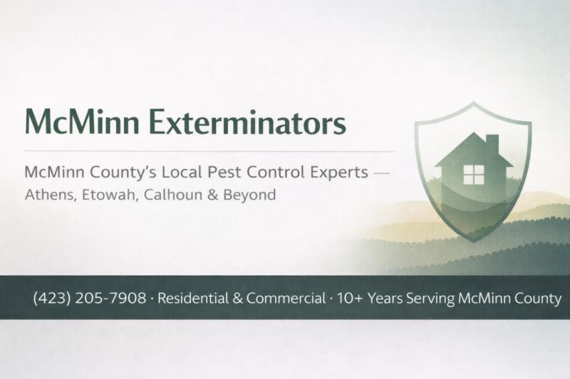 McMinnExterminators.com serves as the dedicated pest control resource for McMinn County, Tennessee - connecting Athens, Etowah, Calhoun, Riceville, Niota, and Englewood residents with local extermination services for over a decade.