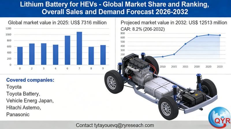 Unlock the Future of the Lithium Battery for HEVs Market: Comprehensive Global Market Report 2026-2032Global leading market research publisher QYResearch published the release of its latest report, "Lithium Battery for HEVs - Global Market Share, Ranking, Sales, and Demand Forecast 2026-2032". This in-depth report provides a complete analysis of the global Lithium Battery for HEVs market, offering critical insights into market size, share, demand, industry development status, and future forecasts. Whether you're a stakeholder, investor, or industry player, this report equips you with the data and strategies needed to stay ahead in a rapidly evolving market.